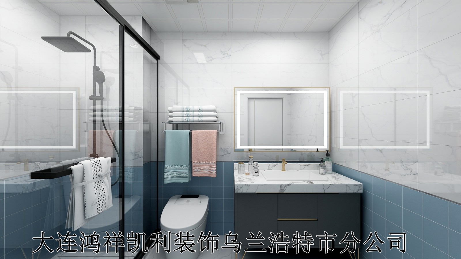蓝灰色瓷砖搭配灰色面盆给人简约、时尚的舒适感!