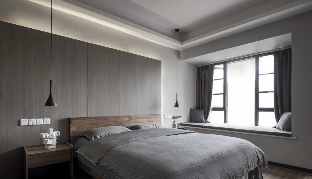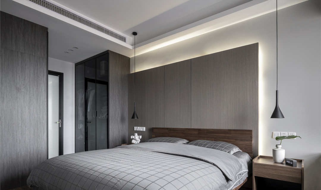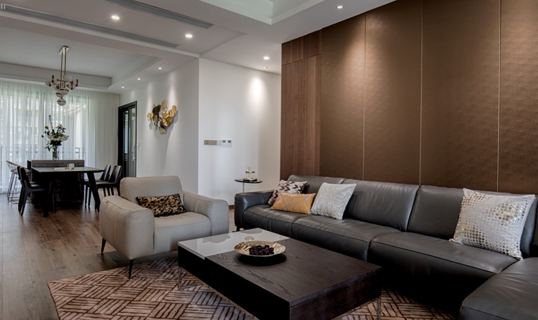 全厅采用深色KD板和质感涂料,合理搭配去平衡空间关系