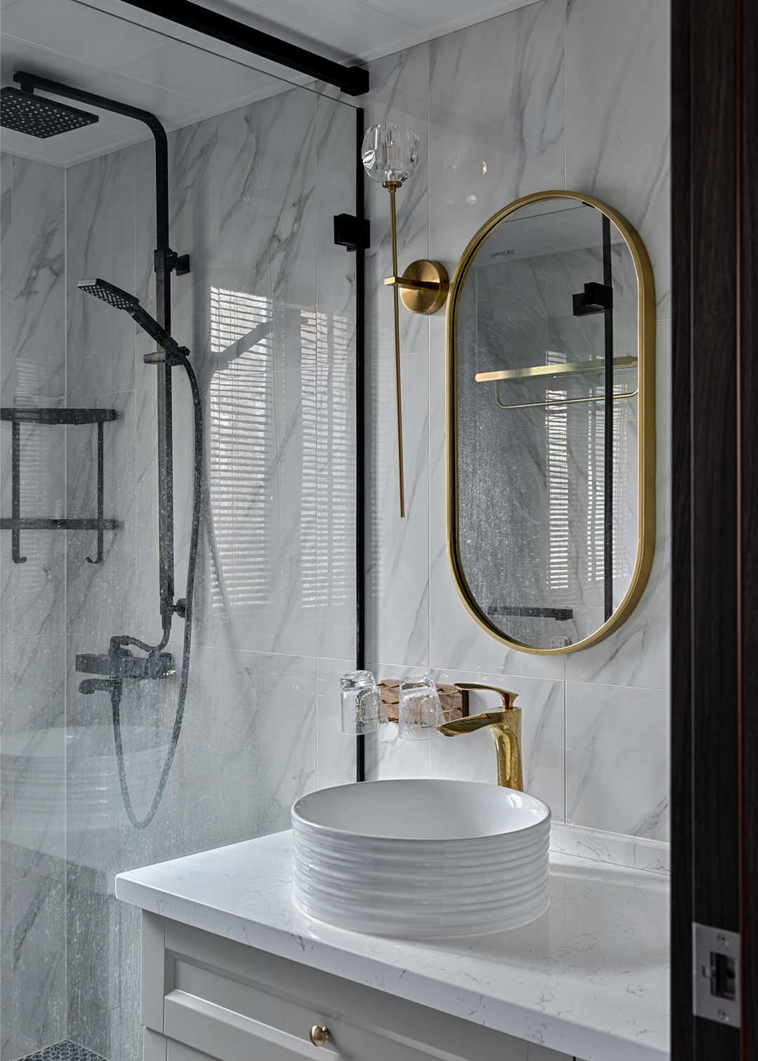 客、餐厅以材质间相互对比与高低天花的错落,区分空间使用功能,打破格局界限,强调视觉划分的趣味性