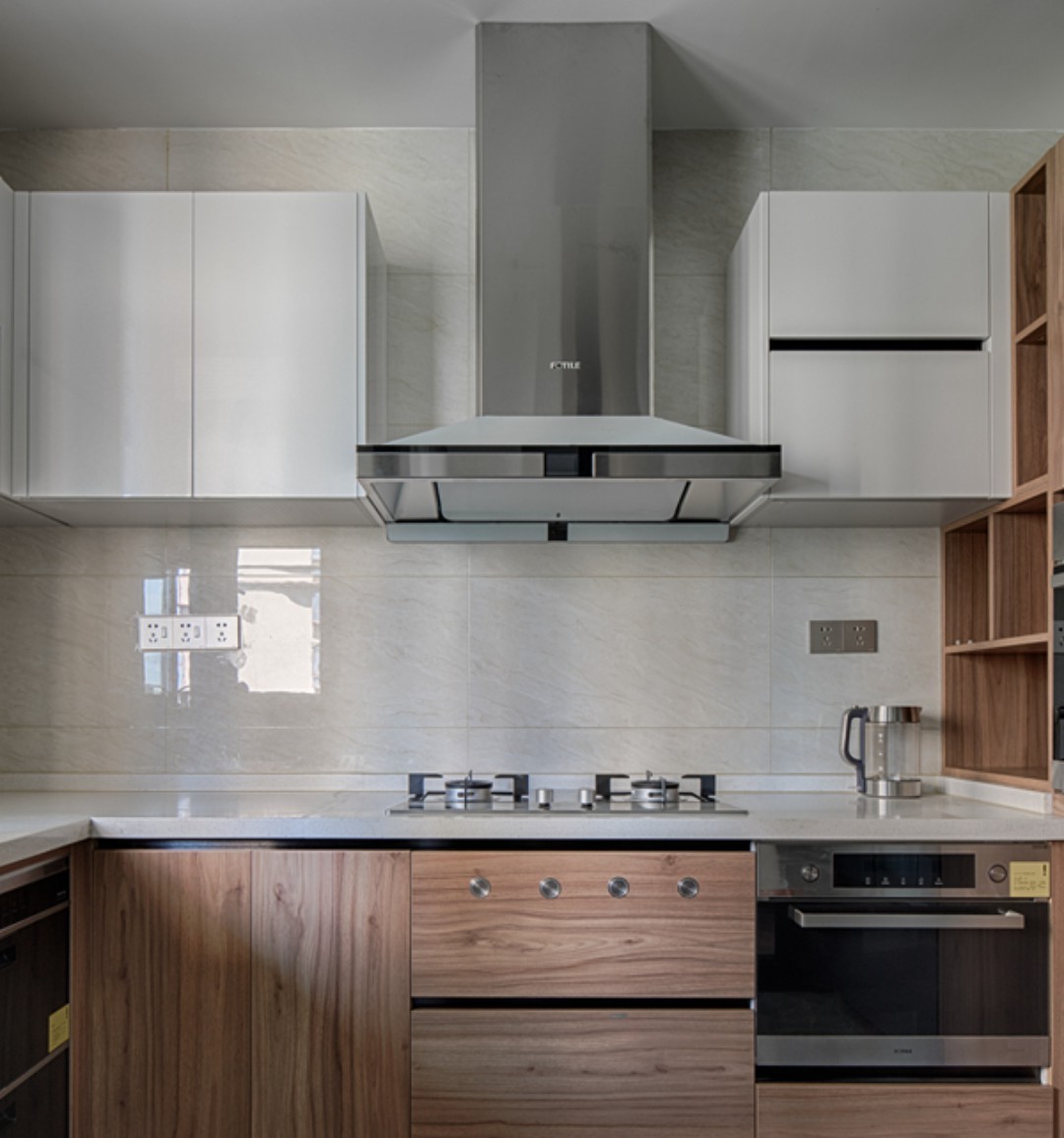 厨房橱柜大面积使用原木材质,看起来简单整洁