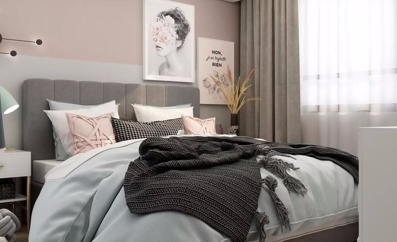 卧室附带步入式衣帽间,并且配色相对客餐厅来说会素一些,其配色有种北欧ins的韵味。