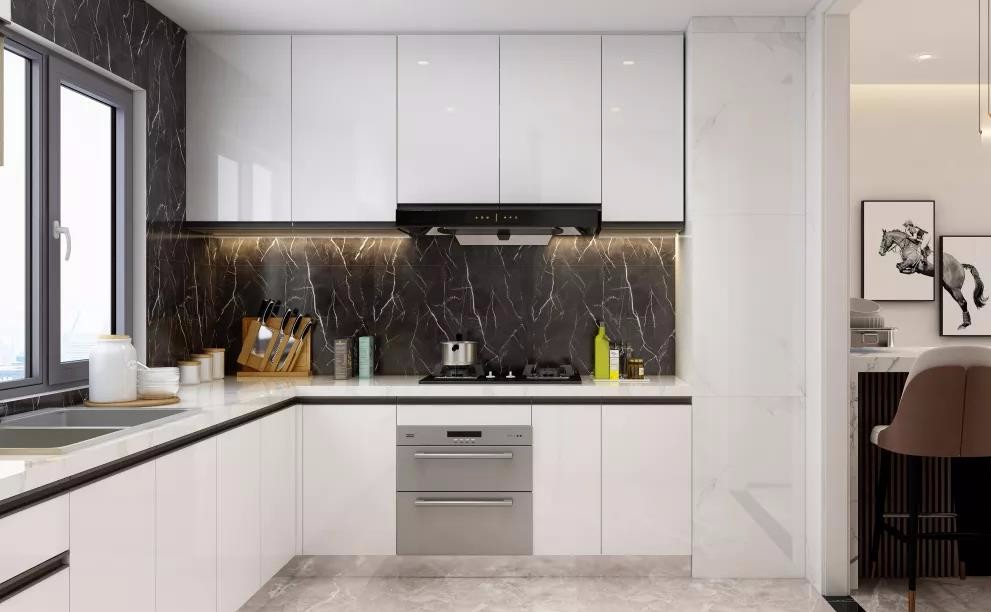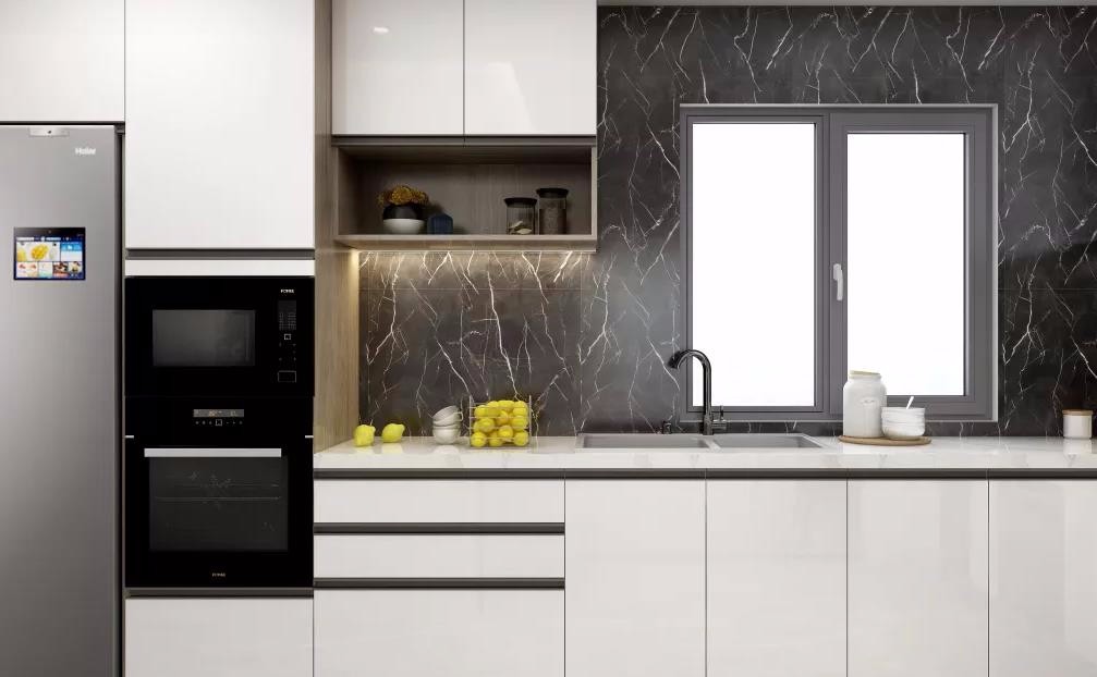 厨房的柜体颜色与瓷砖颜色形成完美对比