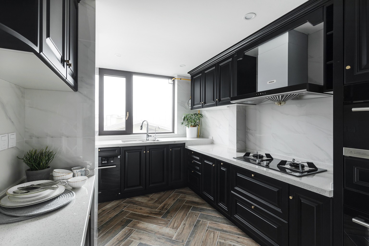 以实用为主,无过多装饰。上下储物柜的设计极大地扩充了储物容量,满足了业主对大储物空间的需求。