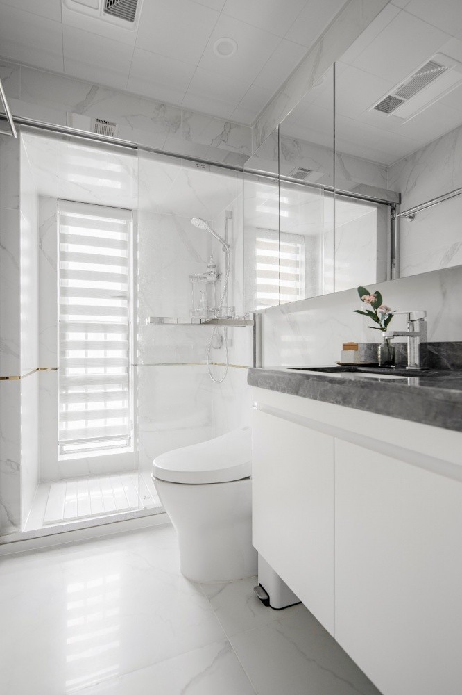 丰富白色空间,双层百叶帘解决隐私问题,让光线富有变化。