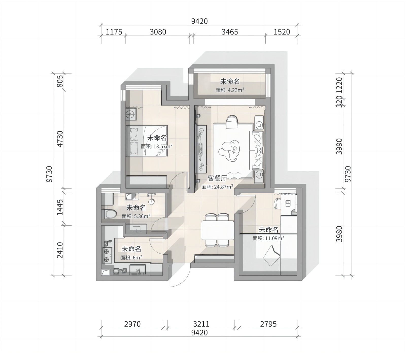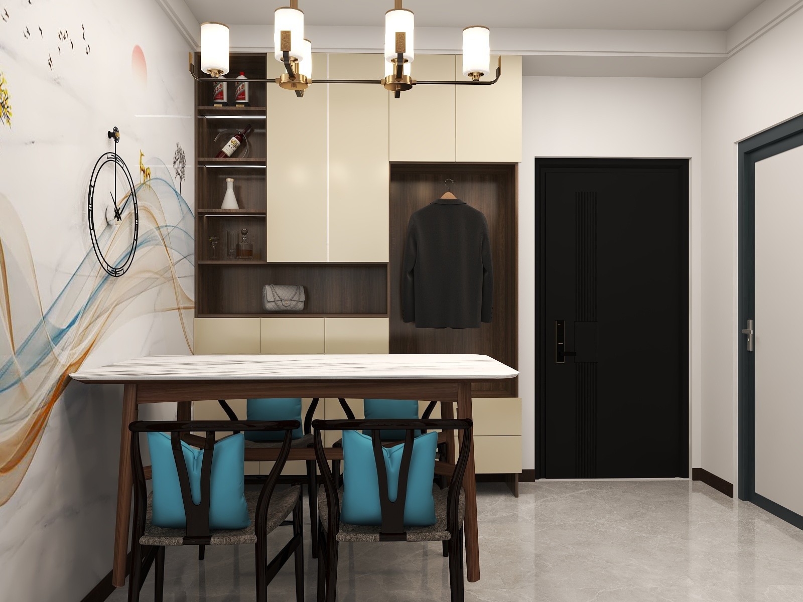 客餐厅一体,餐厅处与客厅设计一致。