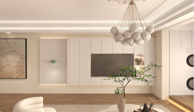 满墙电视柜满足了业主对于储物空间的利用要求