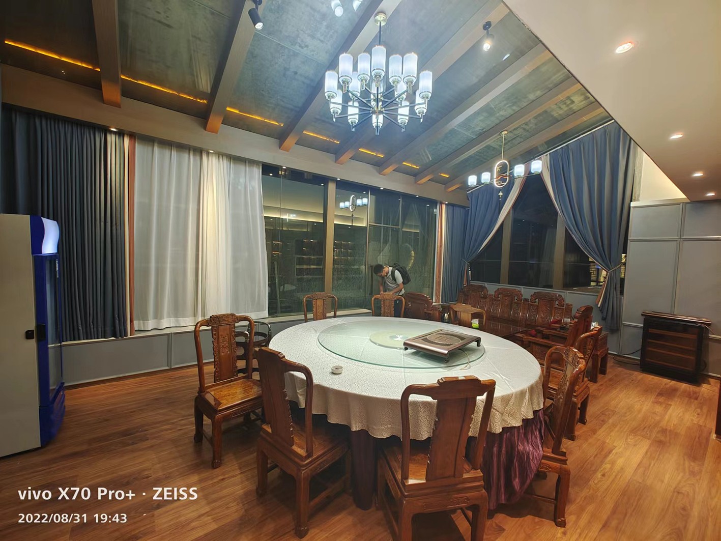 该方案位于广州市猎德大道尚东美御A座4楼整层,该空间拥有公区过道,餐厅包间,办公室,KTV,休息间,空中花园的设计与施工。整个工程造价300多万,工期2个半月。该工程2023年11月份动工,次年1月完工。