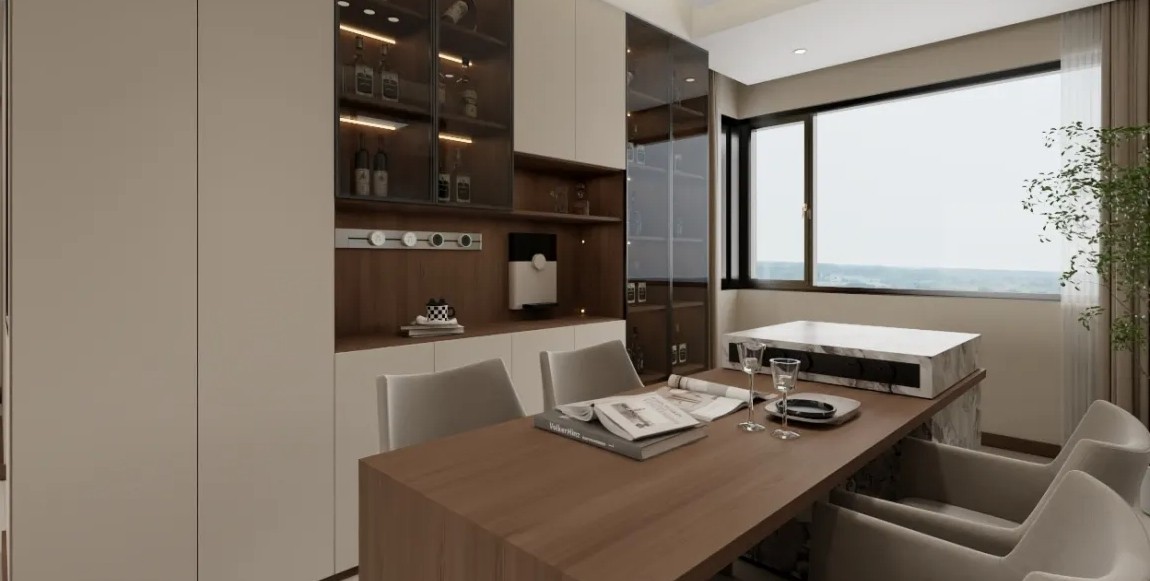 餐厅是住宅或商业场所中用于用餐的空间,通常配备有餐桌、餐椅和餐具等设施,是人们享受美食、进行社交活动的重要场所。