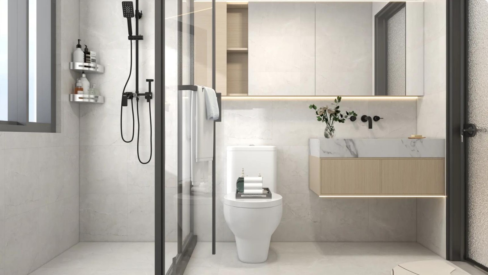 卫生间做的淋浴房,避免水珠溅到马桶上