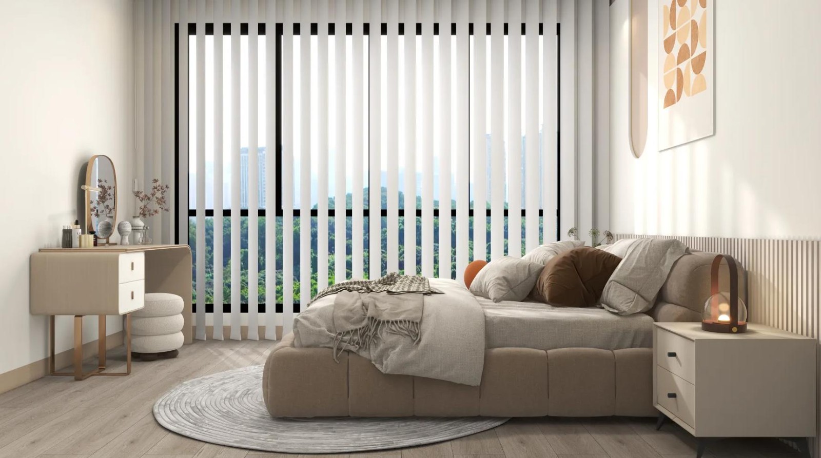卧室根据客户的要求,做的比较简单,做的半高的护墙板家梳妆台