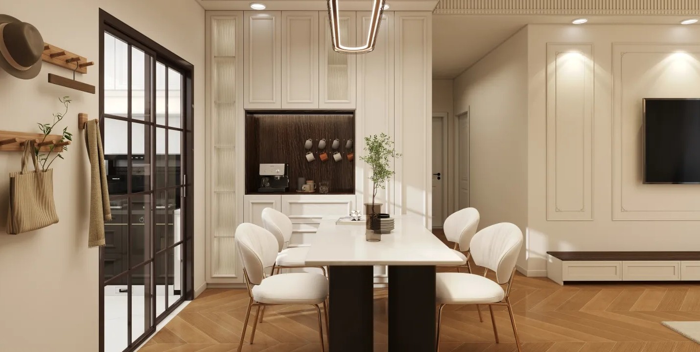 经过重新设计的空间整体以柔和的白色营造温暖的主基调,局部运用富有质感的天然材质形成对比度。