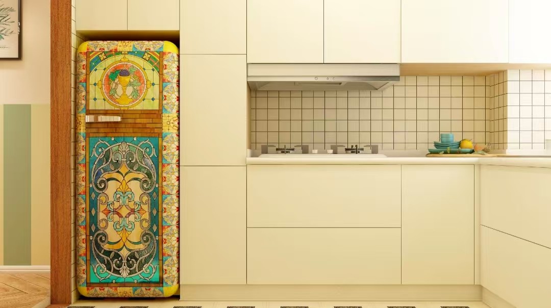 厨房采用白色的橱柜设计,冰箱采用嵌入式的设计。