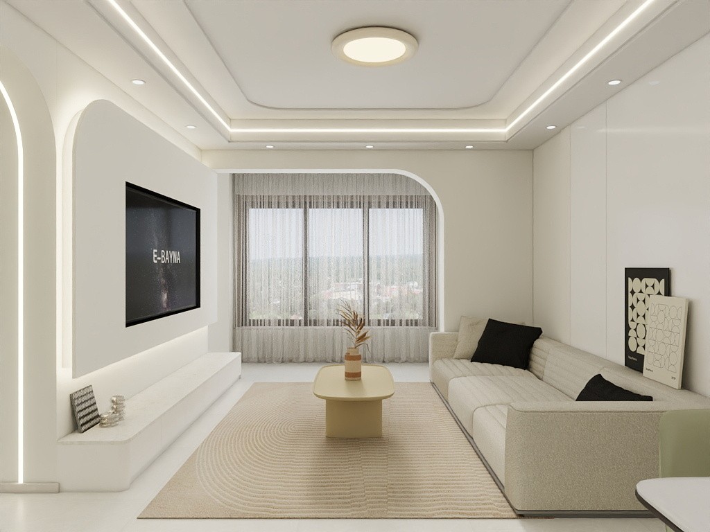 圆弧垭口,石膏板背景墙,木饰面沙发背景墙