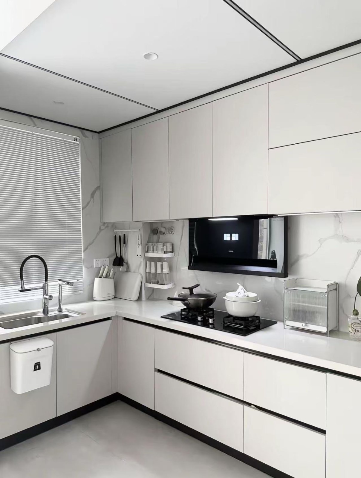 白色柜门显的厨房更大更通透。