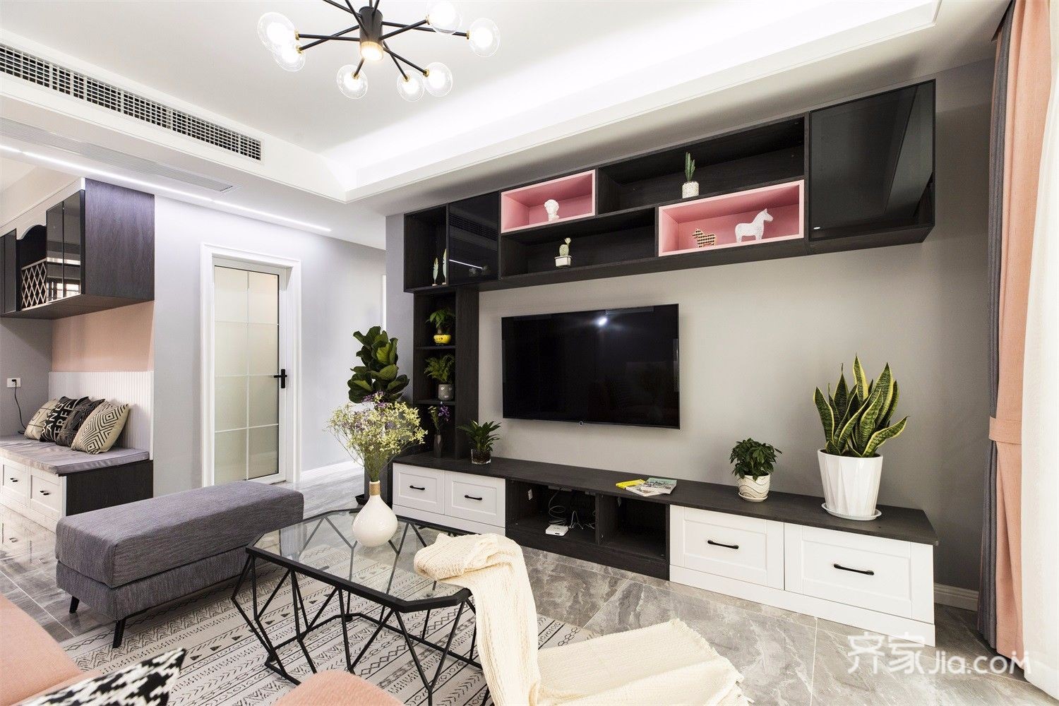 定制电视柜,整面墙,收纳空间显得大方。
