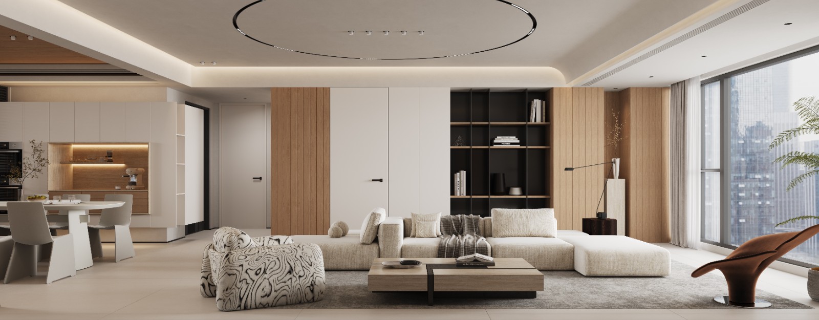 整体的家具定制,突显出现代的生活方式。背景中性色,结合了房主的要求,这也是一幅很好的画面。