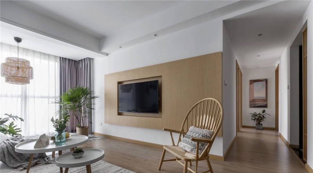 电视背景墙和木地板很搭。