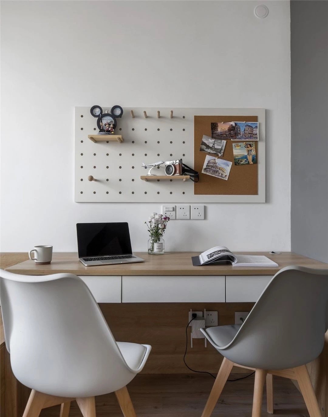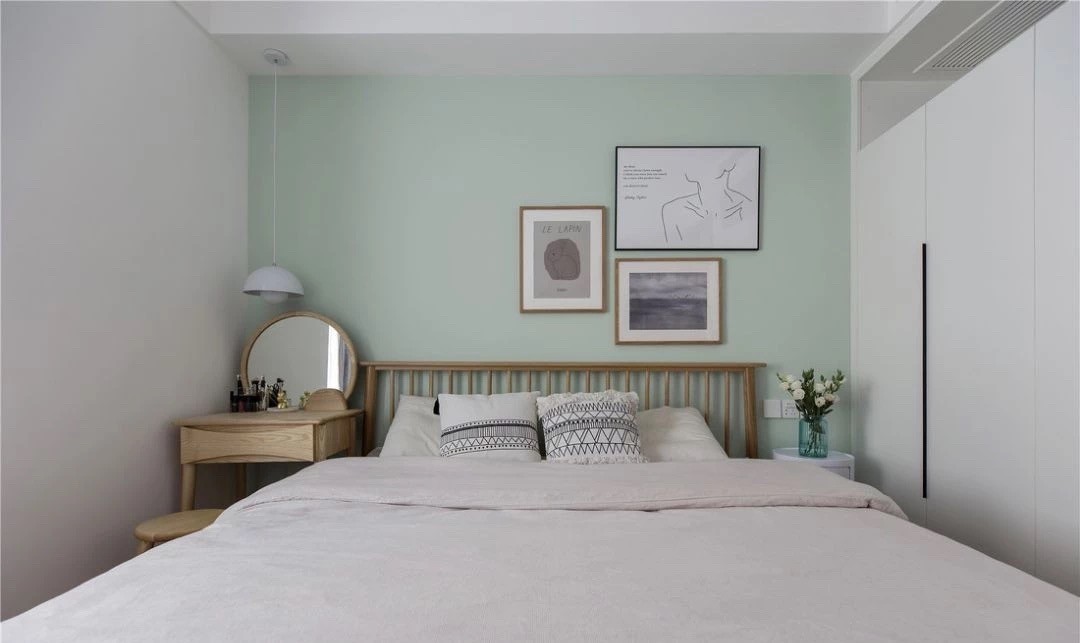 床头背景简单调个色看起来很温馨。