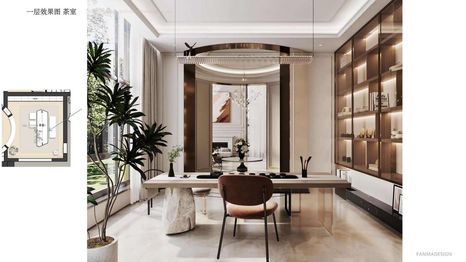 挑高设计,搭配水晶吊灯,大面积落地窗