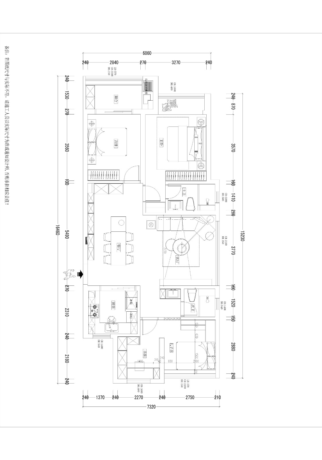 入户鞋柜做了储物格,增加装饰性,客餐厅铺贴做了分区,