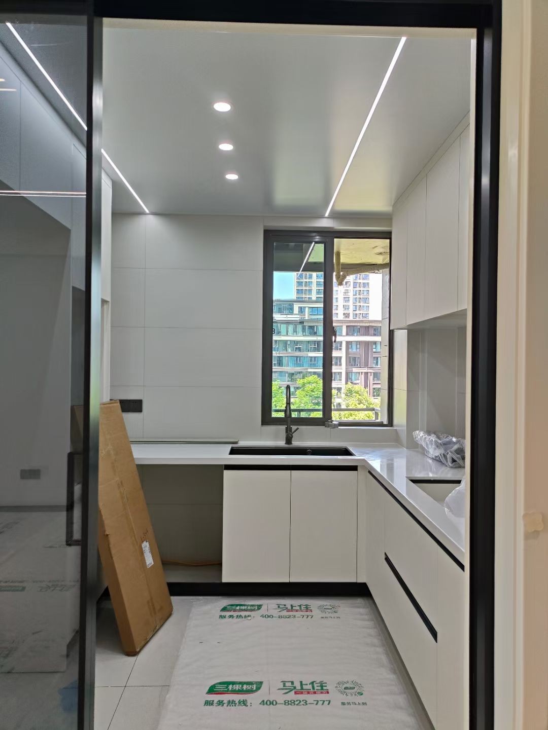 厨房做了洗碗机,蒸烤箱,颜色根据客户喜好选了白色磨砂