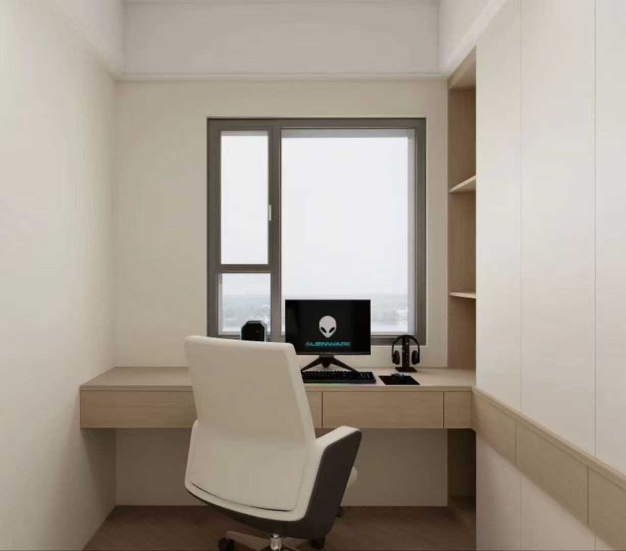 原精装修,四房改三房户型,承重墙不能拆,儿童房和书房结合。