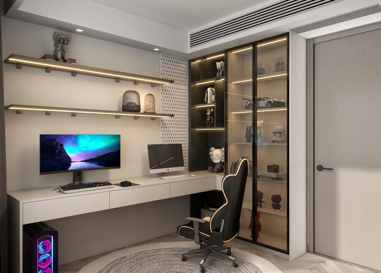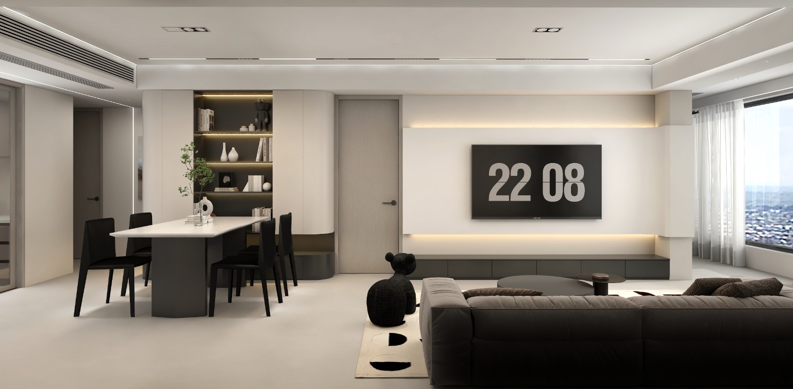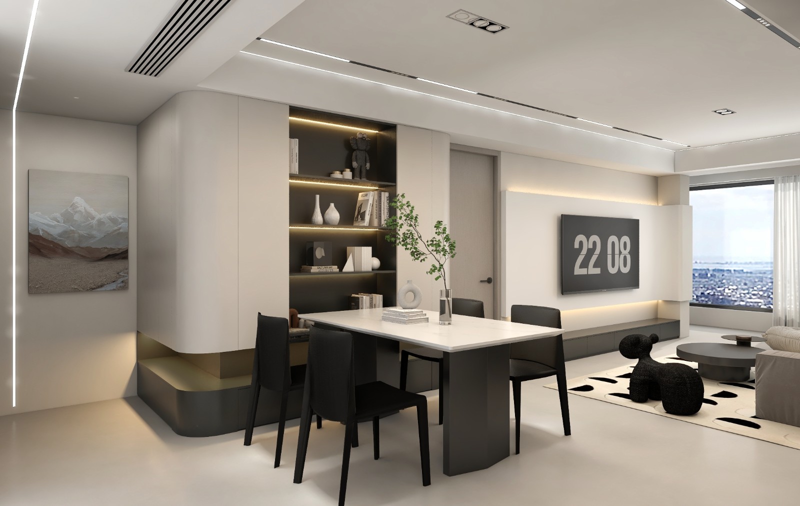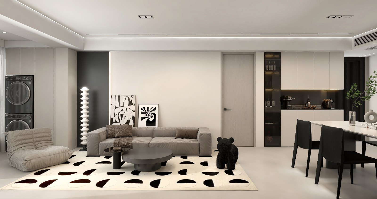 整个色调以客户喜欢的黑白灰为主,增加暖色灯光和饰品辅助