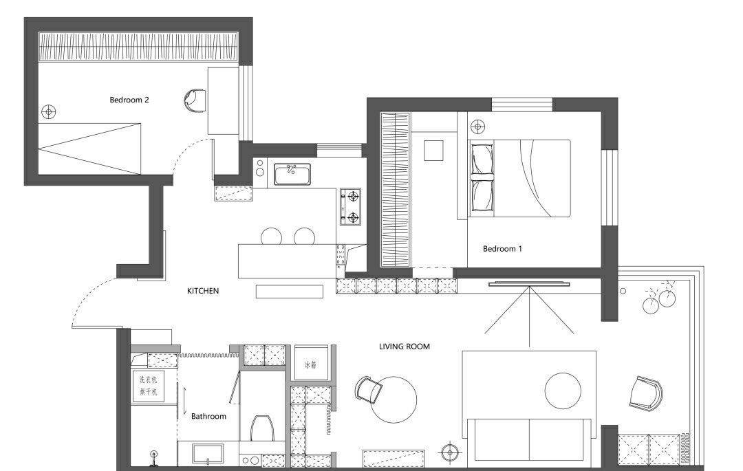 1.将厨房变为开放式,增加岛台和整体储物功能。 2.扩大卫生间,形成淋浴、马桶、洗漱、洗衣四室独立。 3.进门右手边增加鞋柜、衣柜的收纳,以及隐蔽冰箱的同时增加步入式杂物间。