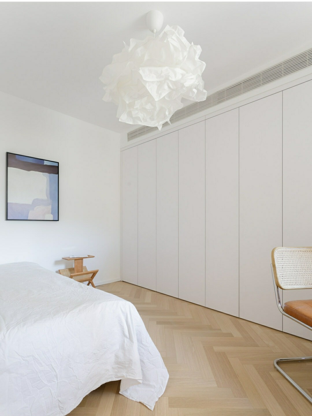 次卧也可以作为书房使用,通高门板的储物柜