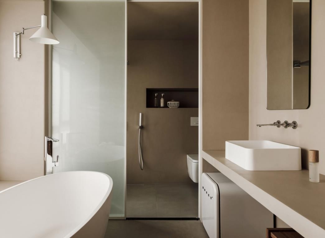 身心在此刻得以放松,赤脚踩在温润的微水泥地面上,感受家的温度。