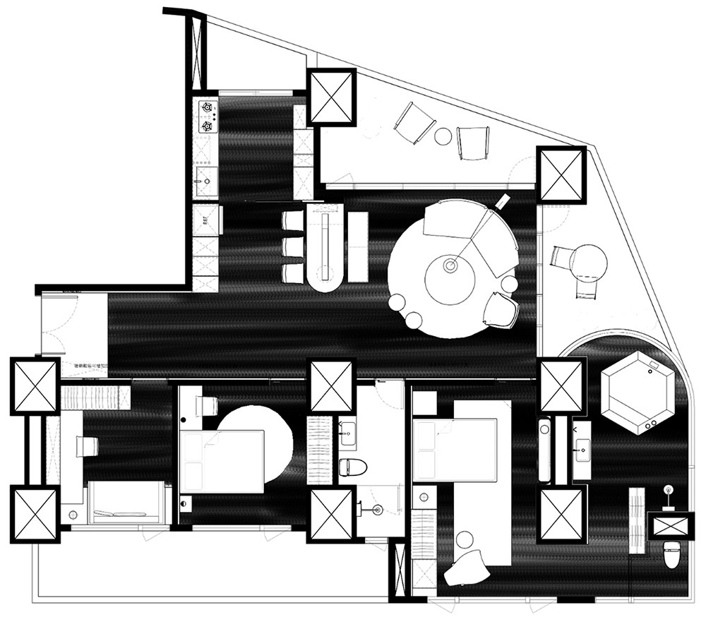 穿透的空间属性拉近人居生活的亲密,主卧及次卧领域则保留私密性。