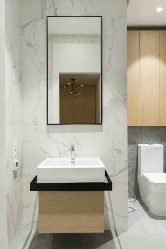 卫生间做镜柜,隐藏排水系统。