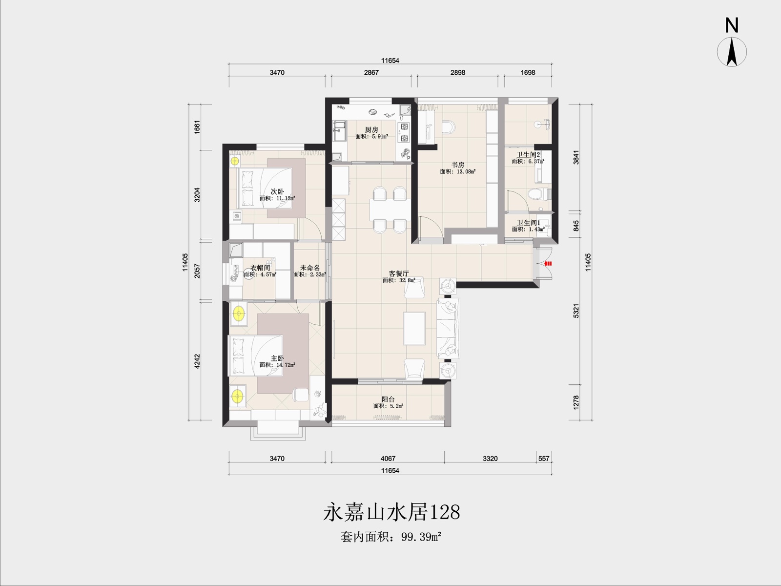 90后年轻人婚房,女业主是老师,需要独立的办公空间,家里两个卫生间只保留一个,主卫改为衣帽间。业主喜欢简洁,大方一些,整体装修出来的效果需要干净整洁,颜色清新素雅。
