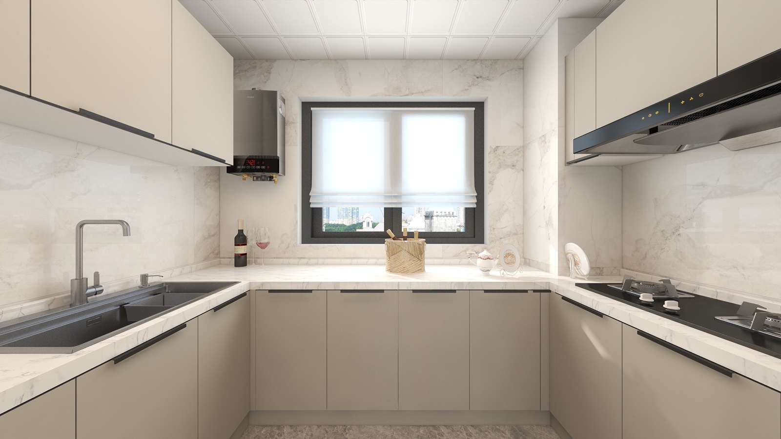整体柜橱,隐形拉手,平板门简约,方便收拾卫生。