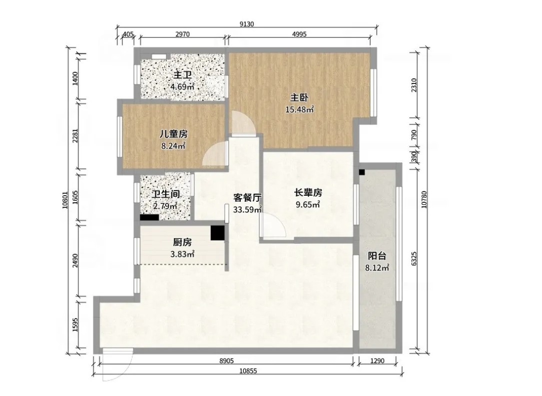 102㎡2室暖灰色系