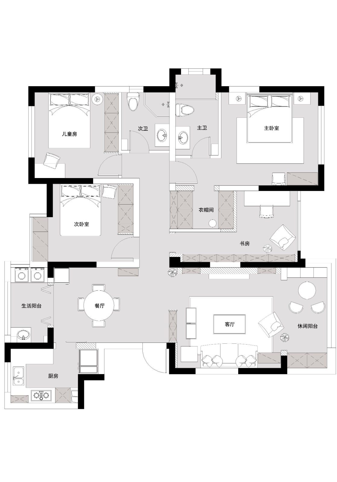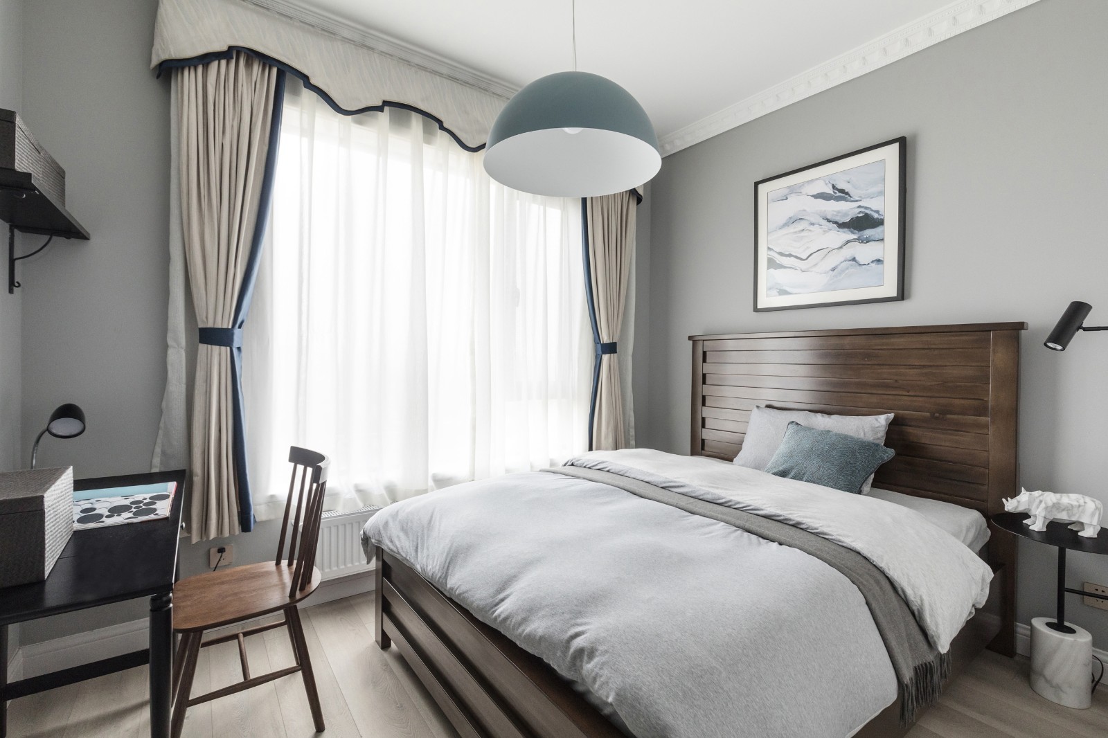 卧室是我们休憩的地方,设计不单单是设计墙面,地面的装饰,更主要是设计人的生活,空间足够的话尽量不要在卧室空间增加很多物品,会影响人的睡眠。