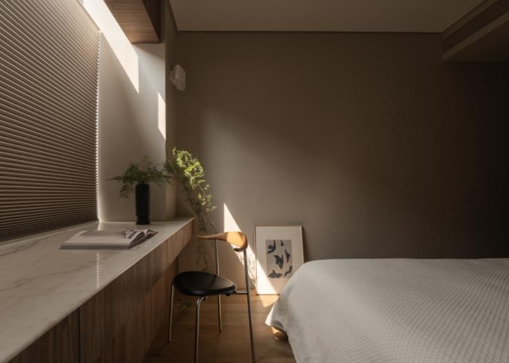 主卧睡床面向视野***的窗户,将储物区分离出来,强调卧室的睡眠功能和体验感。睡眠空间的舒适度未必以***化呈现,在基本满足的前提下,某些局部留白赋予的思考空间,将成为与居住者一起 “生长成长” 的土壤