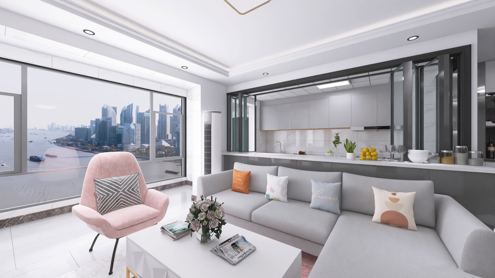 开放式厨房,使客厅整体视野更加宽阔,更 舒适;
