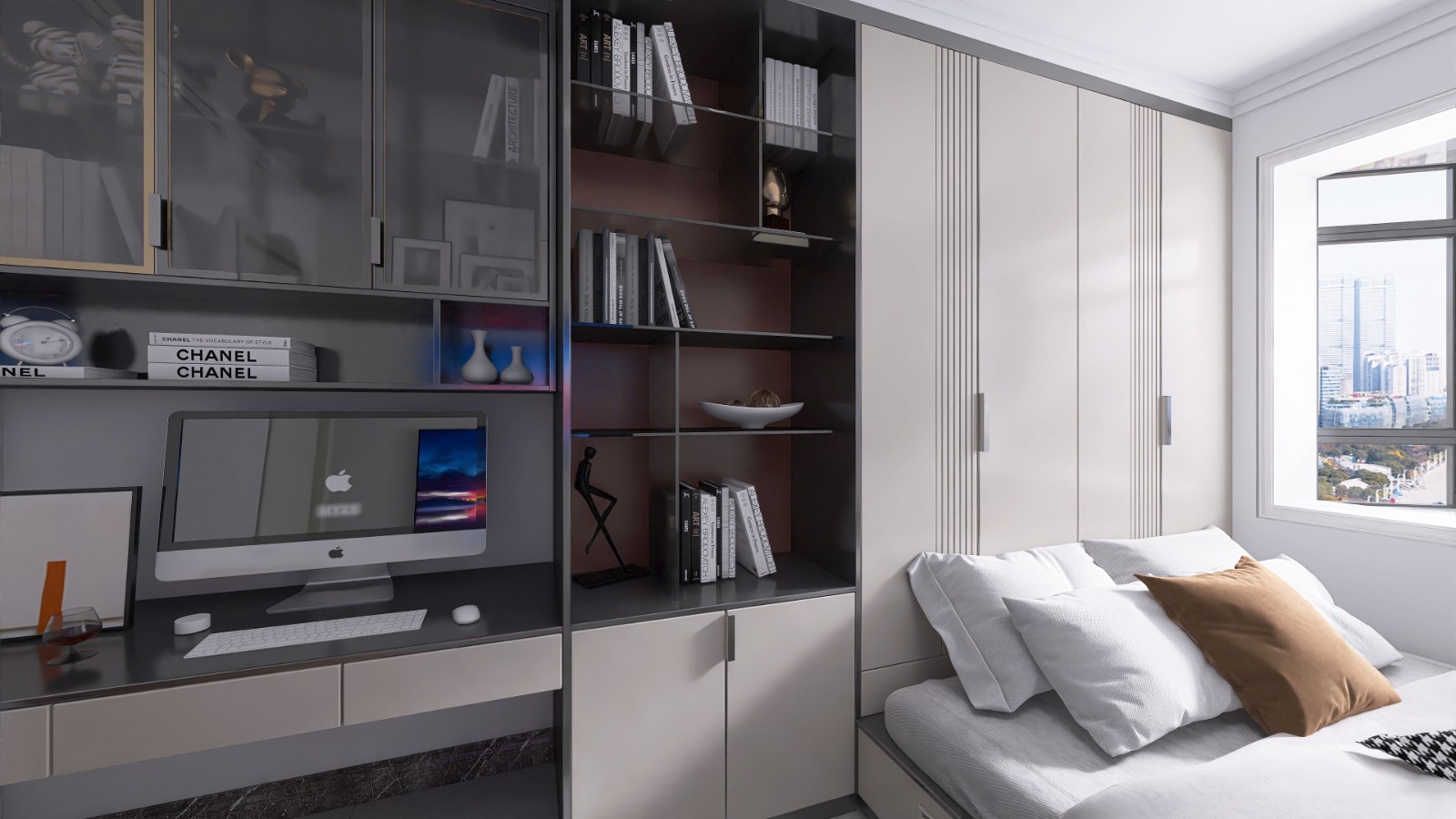 整体榻榻米定制设计使小卧室整体既有居住空间还有学习区域;