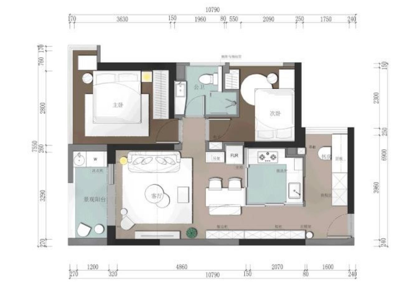 89平米的现代风小户型二居室案例,房子原本的格局是比较紧凑的,有很多墙作为隔断,设计师选择了把大部分的墙体改成了玻璃隔断或者直接拆除,改造出了这样一个宽敞又舒适的小窝!