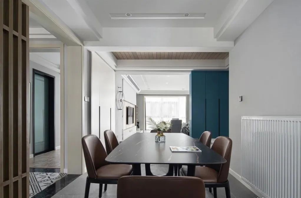 吊顶的设计是很流行的双眼皮吊顶,简简单单地在原基础做一个层次叠级,很显精致,而且比复杂的吊顶更耐看