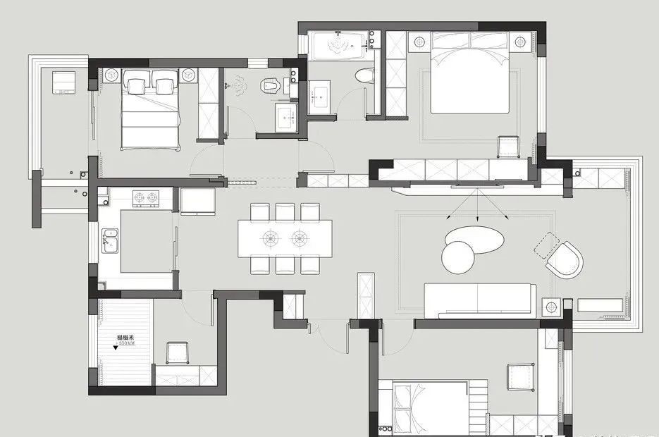 四个卧室分布在四个角上,卧室之间没有干扰,论户型和格局采光明亮又通透大气。