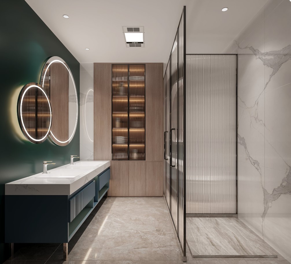 深色装饰墙砖,能使空间不呆板,乃抓住视觉中心。空间分离。