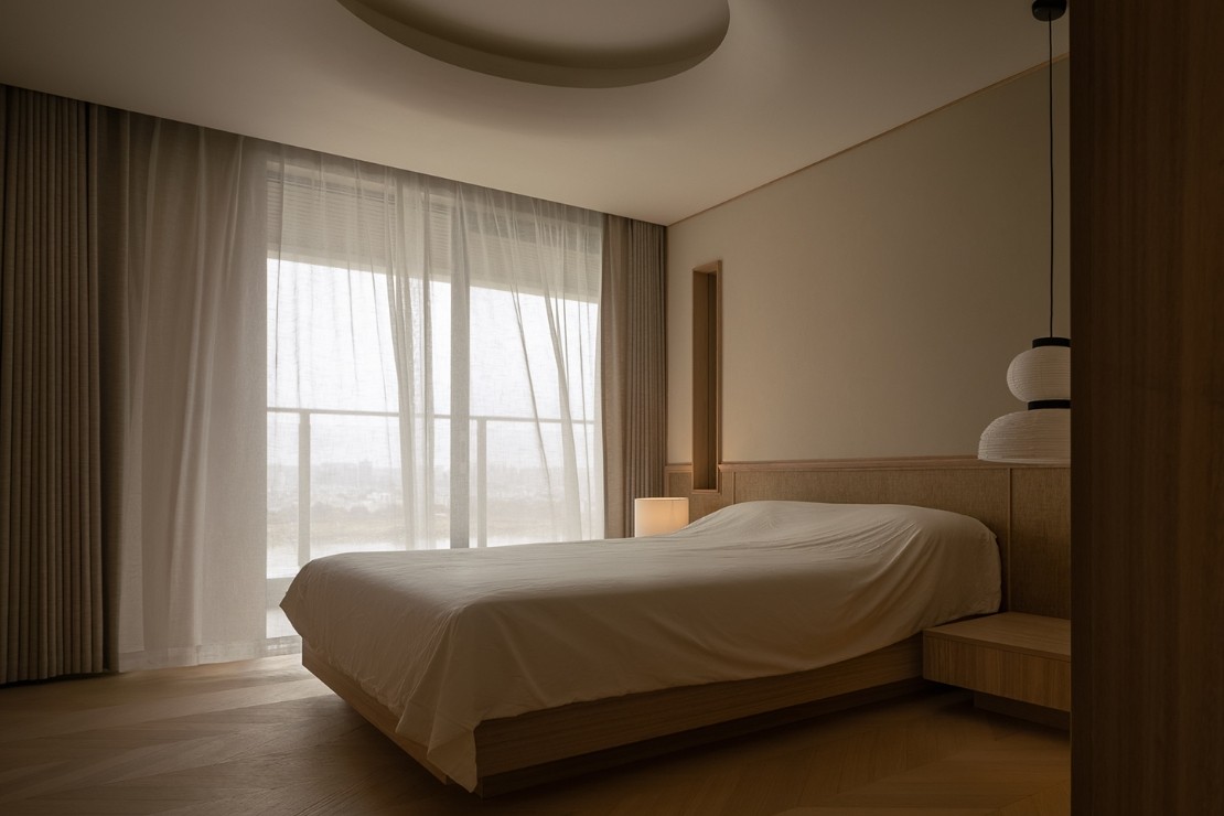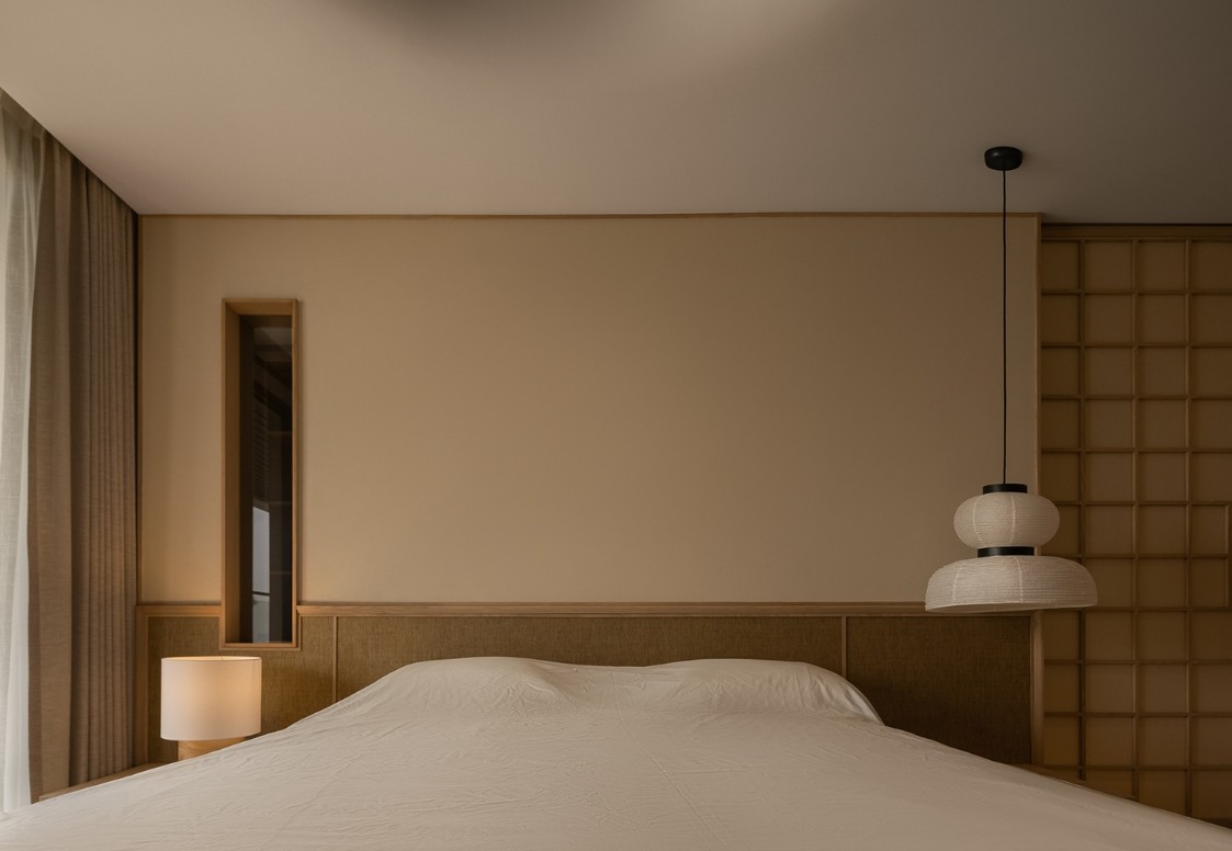 主人特别喜欢家人聚在一起的氛围,因此,设计师将空间公共活动区域***限度地扩展与贯通。将主卧与两次卧分布于公区两端,保持独立与私密。木体纹用,圆顶、格栅木门、悬式纸灯等设计元素延续之。