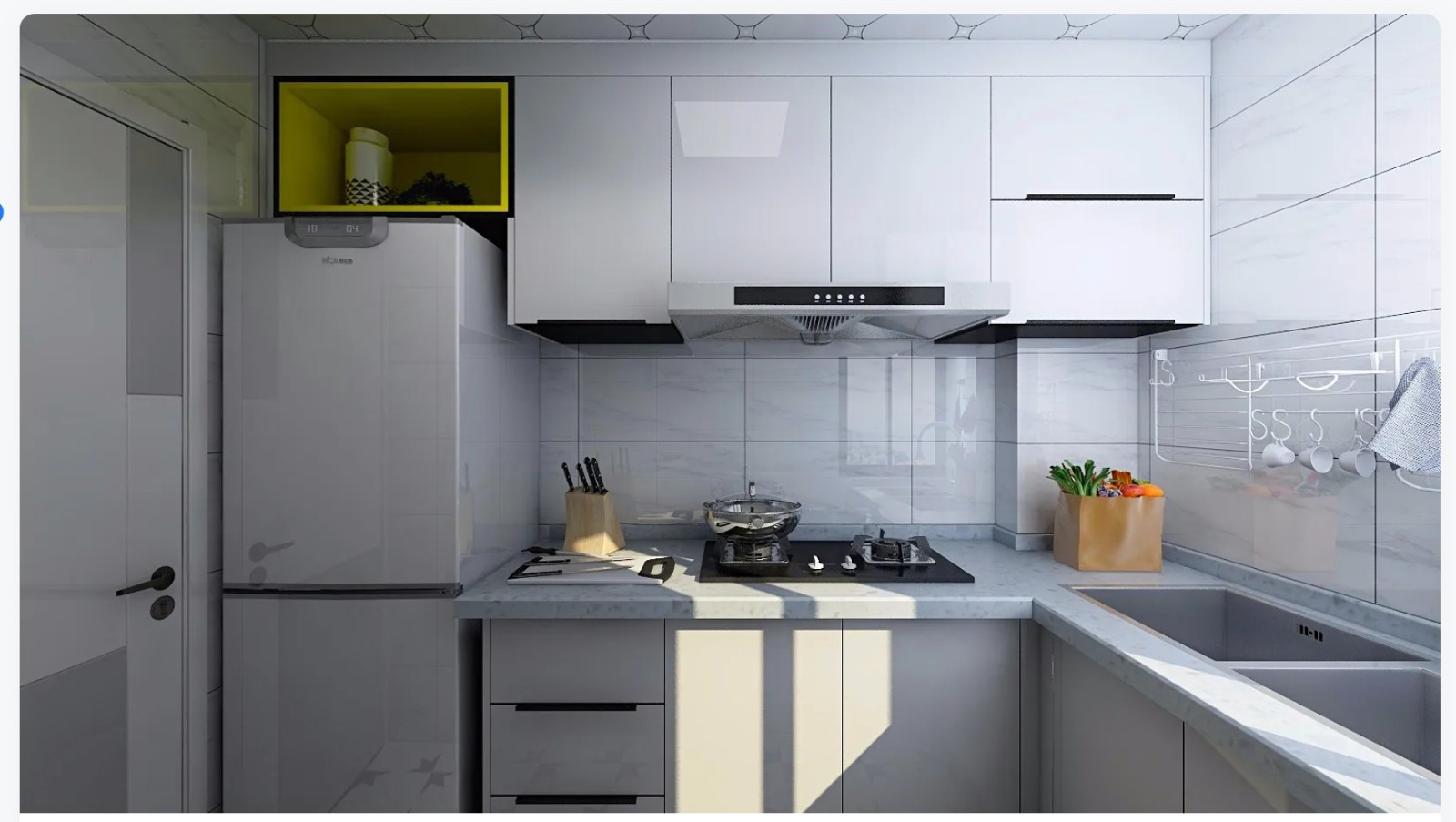 橱柜整体以白灰配色,整体效果更显简洁大气。