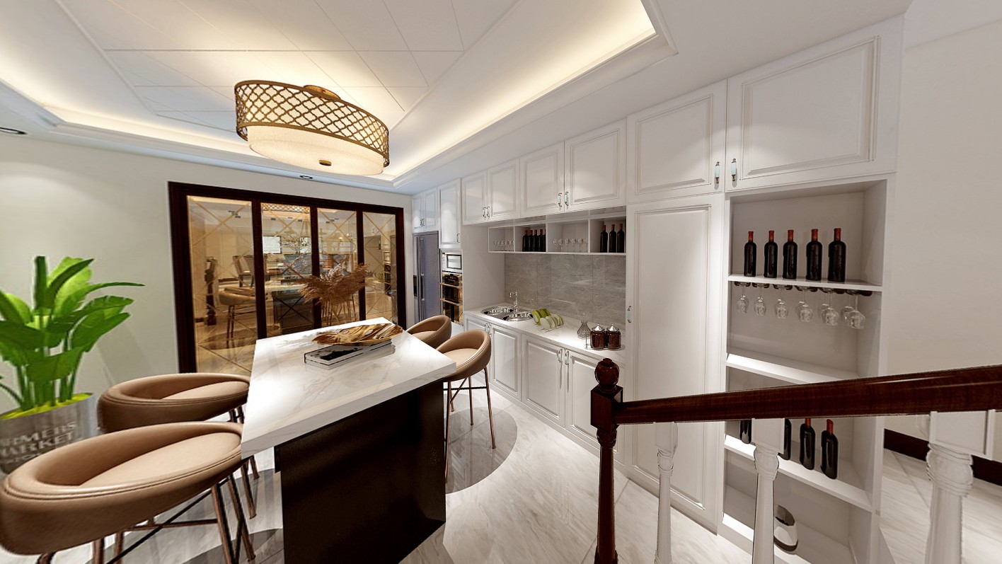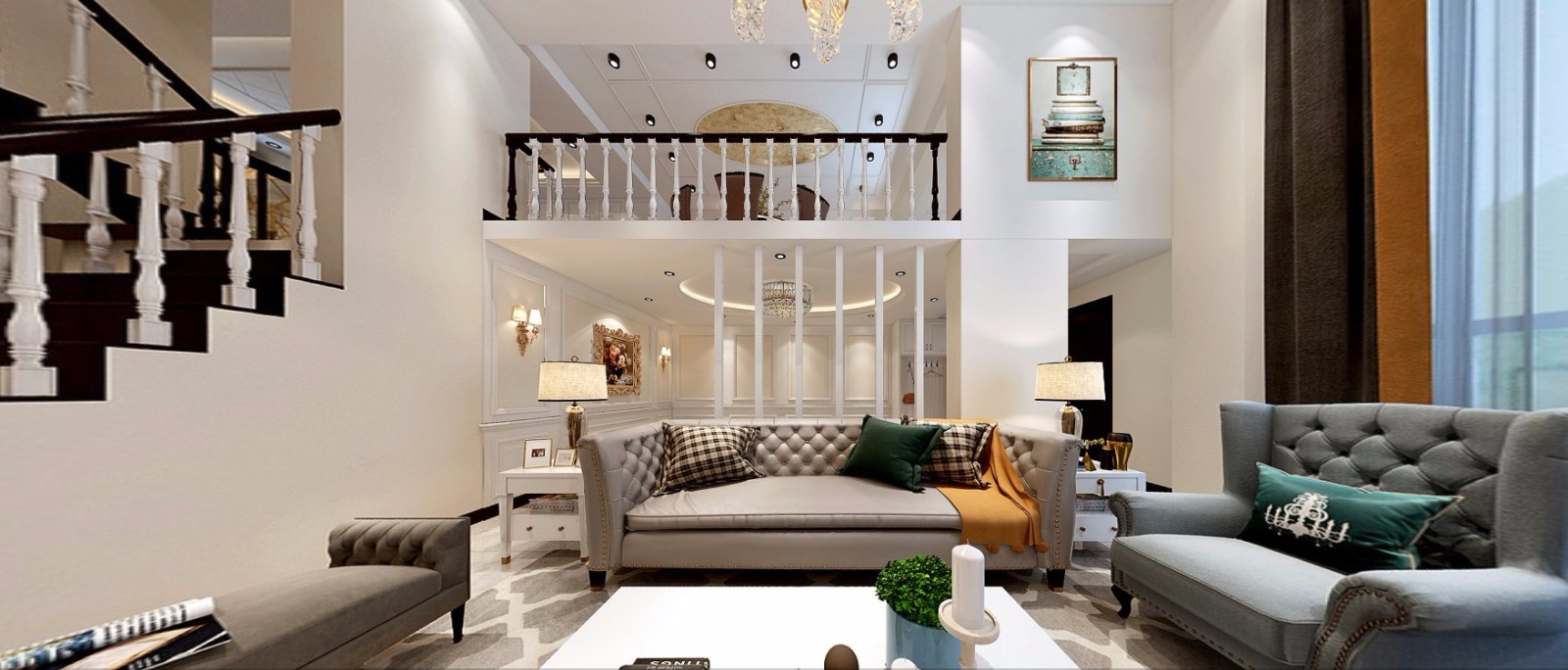 大厅做上下分层,融合清新美式的风格
