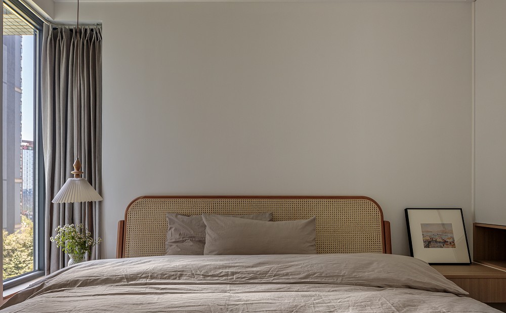 除一整面收纳柜满足日常生活所需,强化功能外,其余均摒弃繁杂元素。