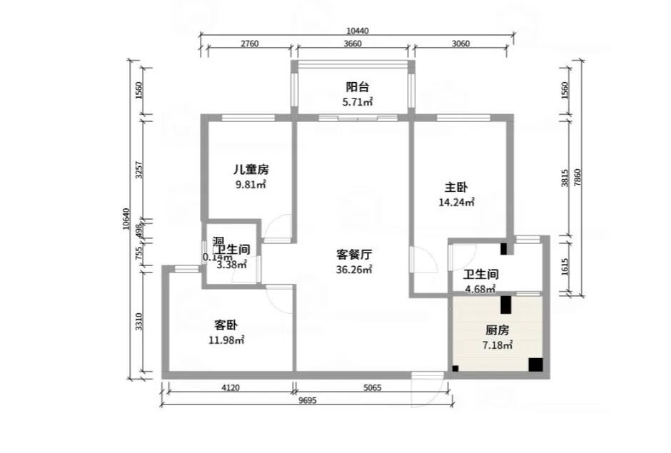 全朝阳三居两卫110平米户型,动静分明,动线流畅.