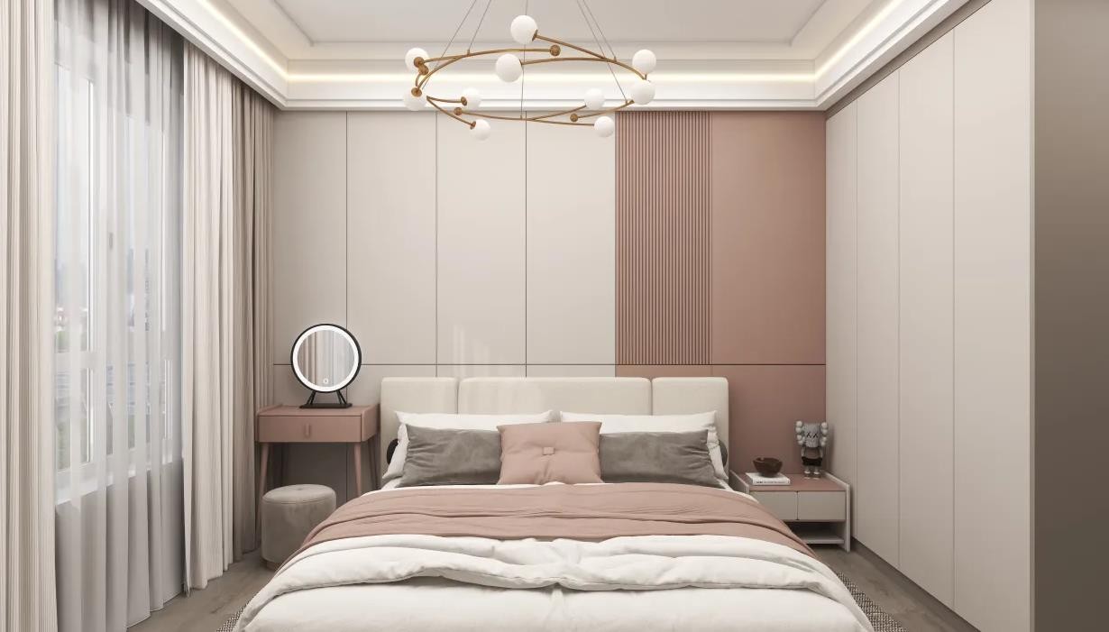 次卧为女儿房,采用更加柔和的主色调.