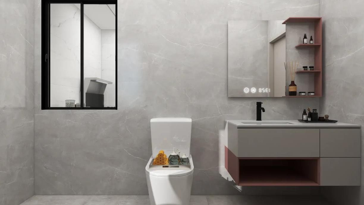 卫生间采用灰色哑光瓷砖,个性大气.